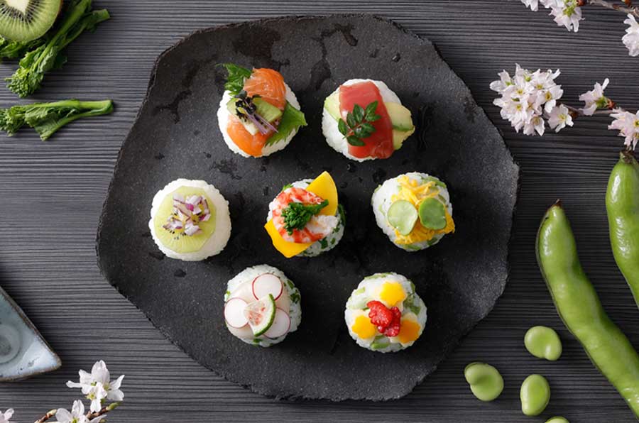Besides providing rich vitamins and other nutrients that seafood does not contain, temari (hand ball)-sushi is deliciously different from the regular nigiri-sushi, offering new tastes and textures especially with the rice made by